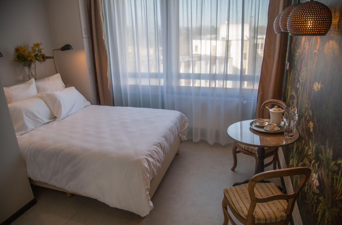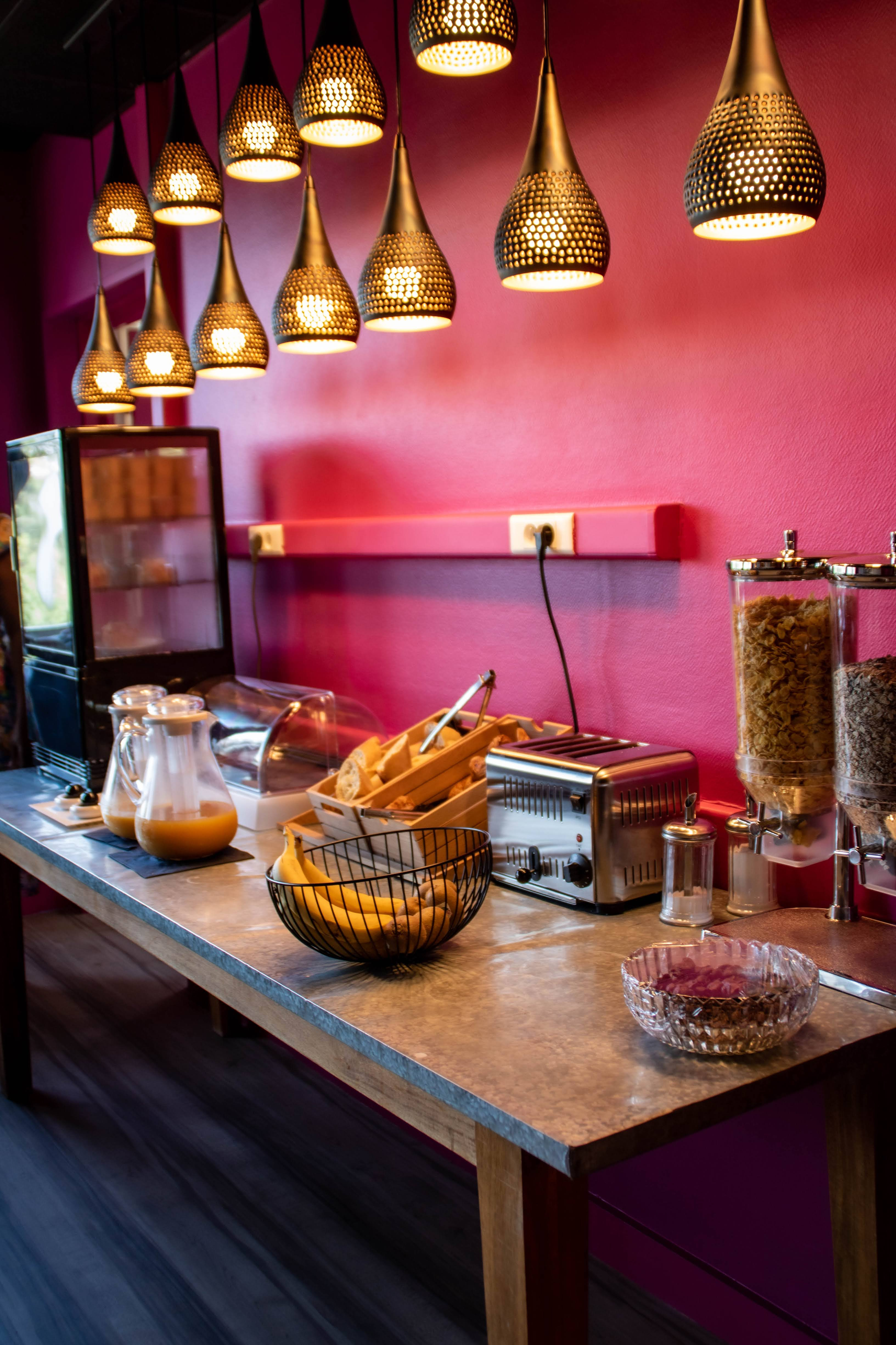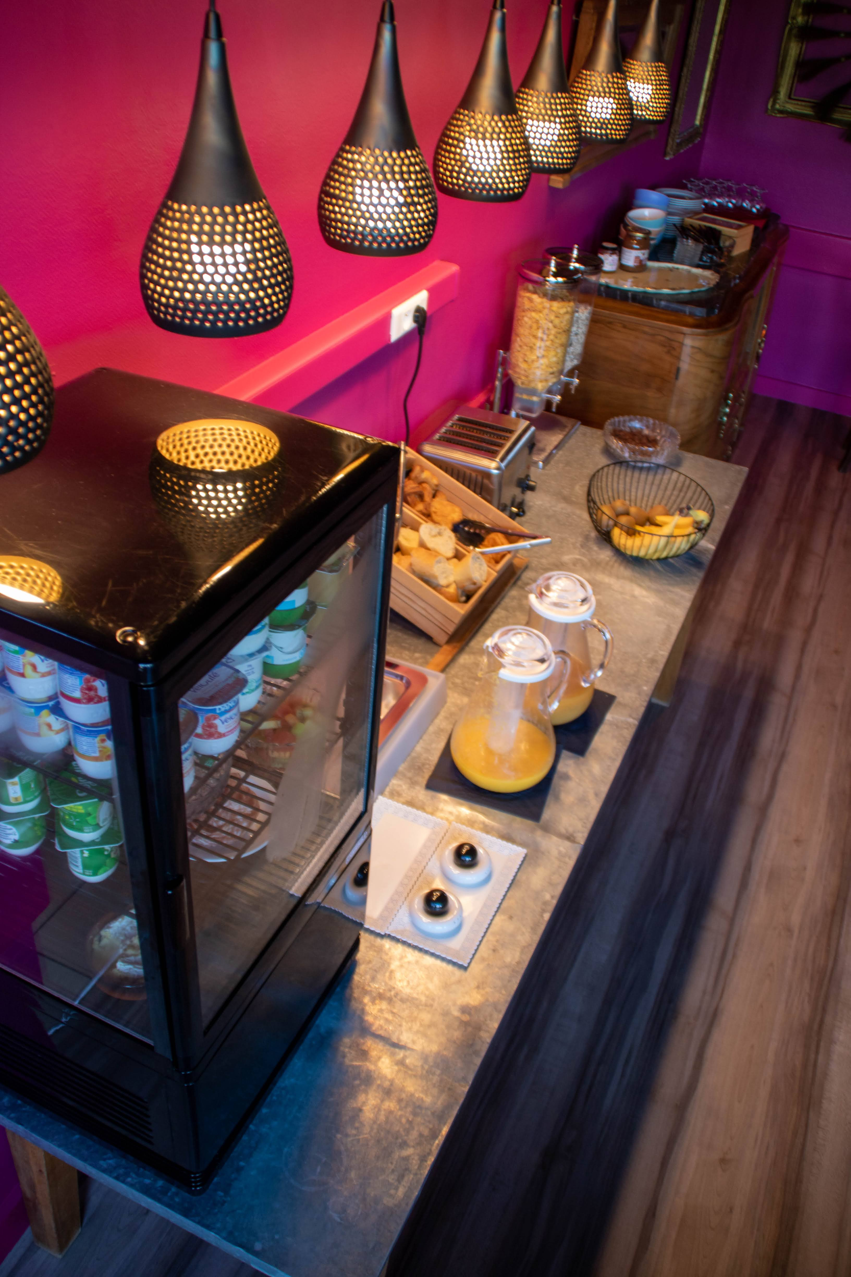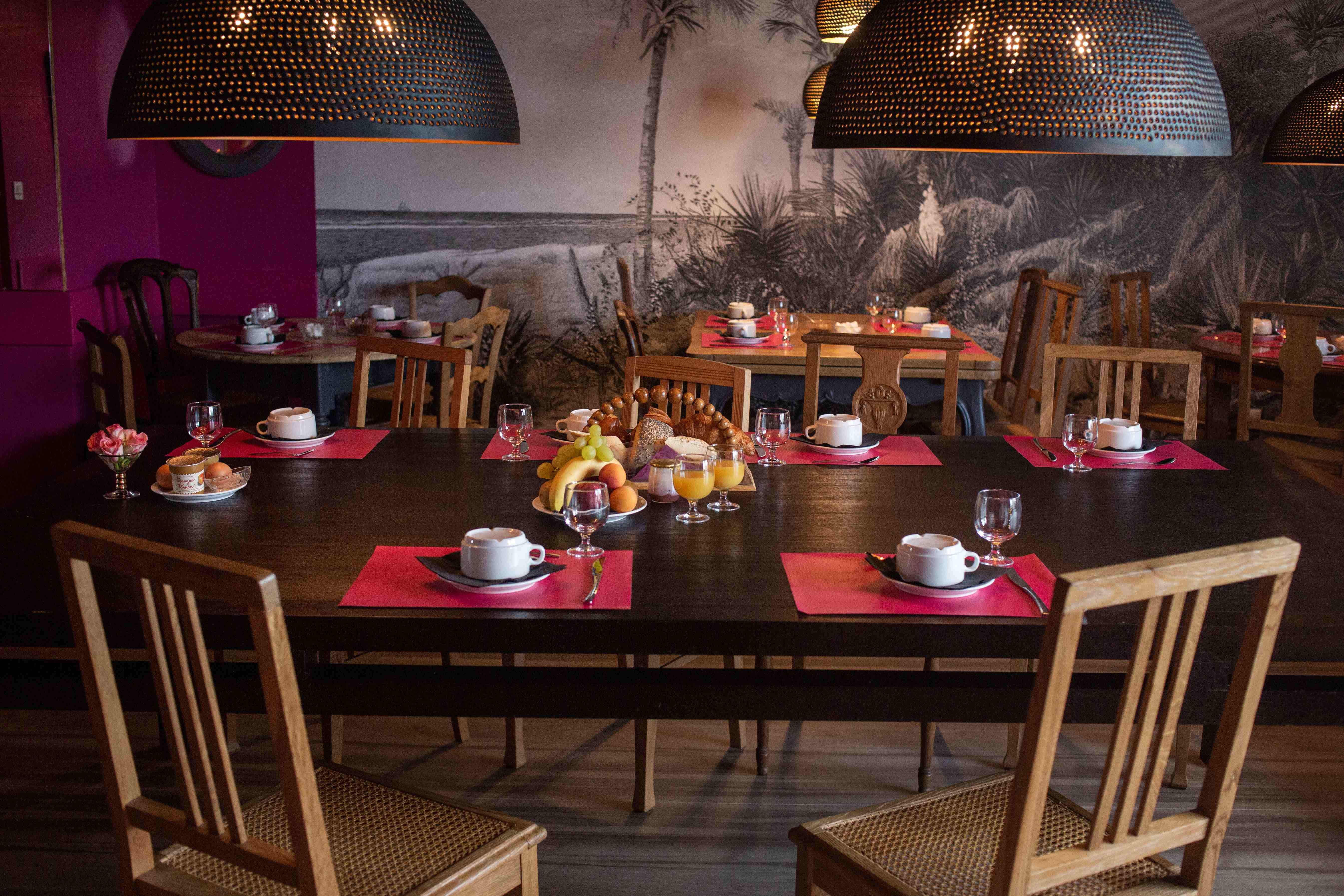Les petits déjeuners sont servis dans la salle à manger de l'hôtel, vue panoramique garantie ! Profitez de nos 24 chambres doubles standards ou supérieures et laissez-vous porter jusqu'au bar en déambulant au travers des œuvres exposées.